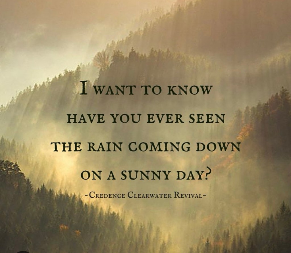 I love women and I love rain. Inflicting pain is a cowardly, unmanly, demonic act. Today’s song asks the question, “I want to know have you ever seen the rain coming down on a sunny day?”