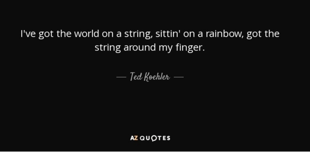 You might ask why my standard reply to the question “How are you?” is “Fine and dandy.” The reason is: I’ve got the world on a string.