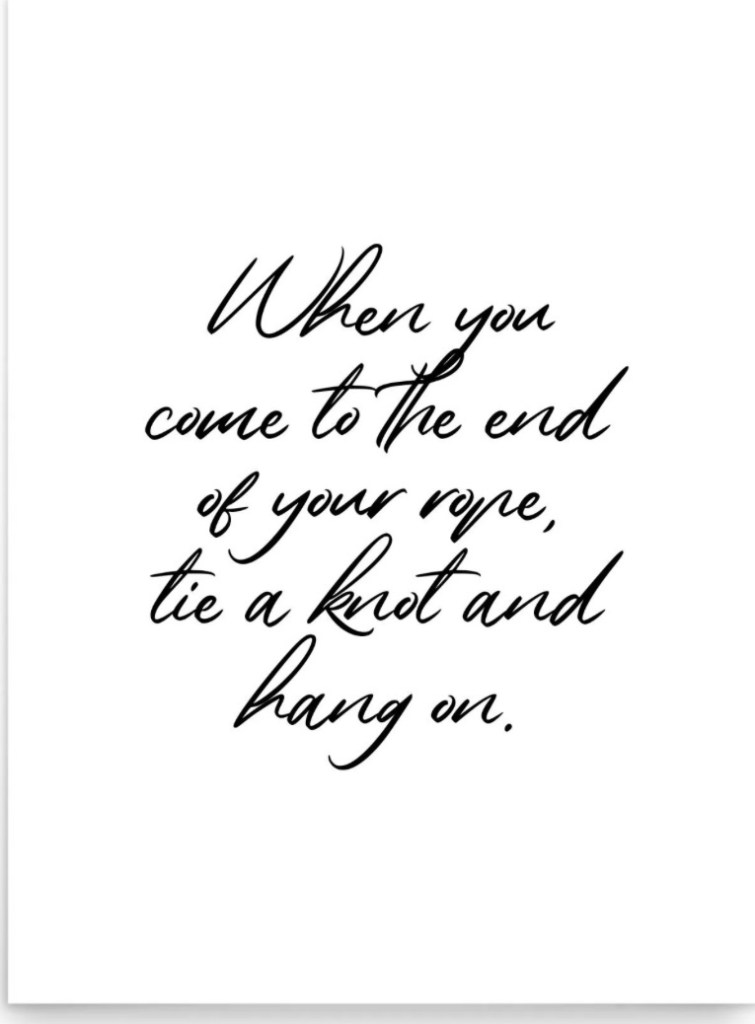 The above quote is attributed to several great leaders among them Thomas Jefferson, Abraham Lincoln, and Franklin D. Roosevelt. That knot at the end of the rope is the one thing left to hold on to and it is a love we are more afraid of letting go of than falling, something worth holding on to, worth hoping for when all hope is gone.