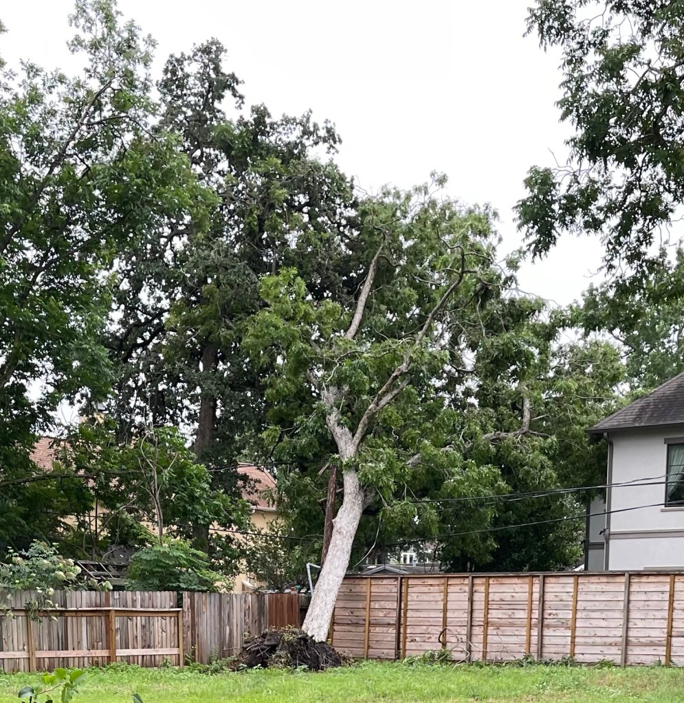 Just when we were prepared to face another hot and humid mostly sweaty and sleepless night our power came back on last night. We were quite surprised as we thought that the large pecan tree that almost one hundred mile an hour straight winds had blown over on the power lines in the empty lot next door would have to be removed before the lines could be energized again.