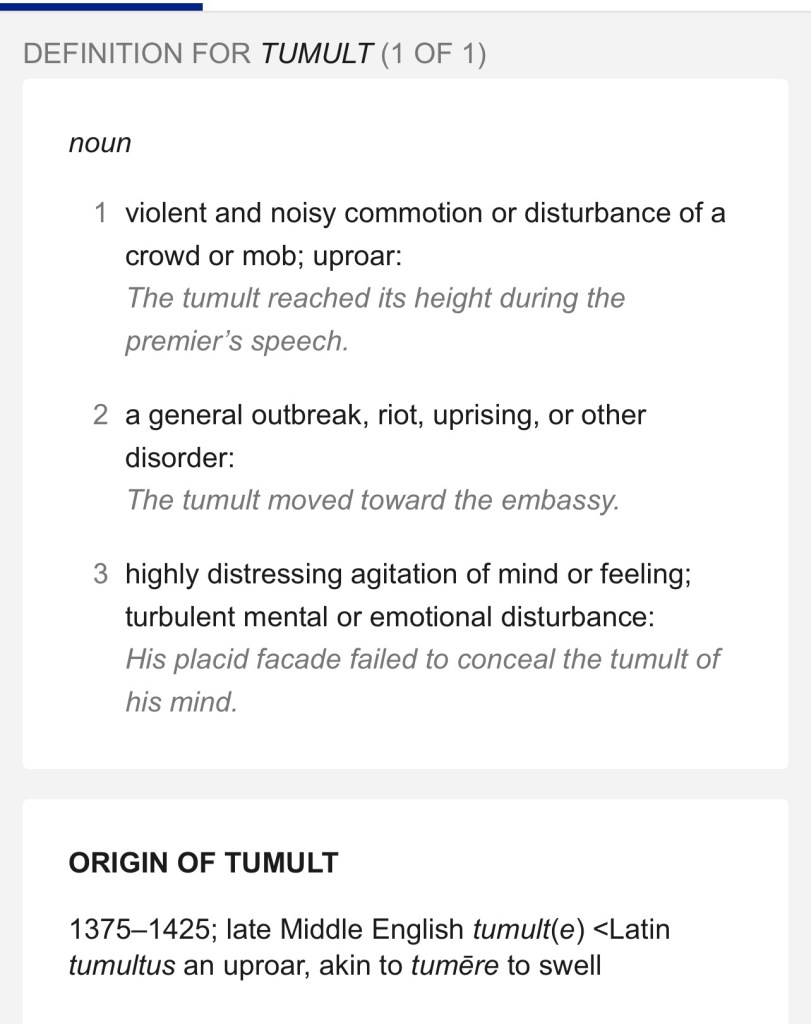 There has always been the tumult, the storms, the noise of competing voices, the crowd. The dictionary defines tumult thus: