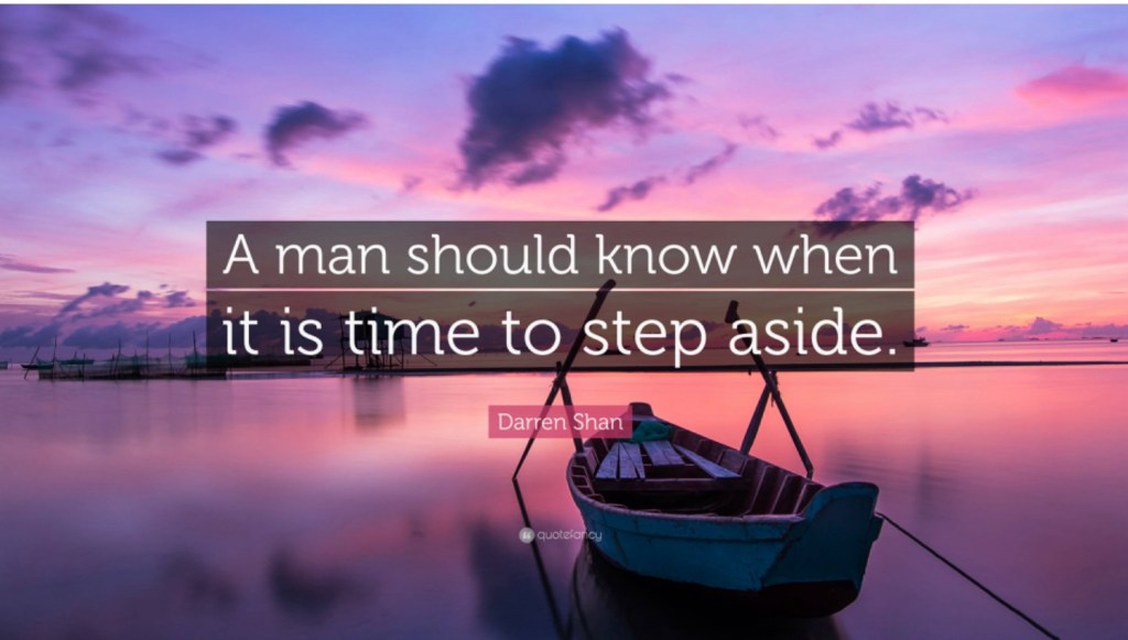 Your legacy is secure, you have done your duty. Listen to the gracious words of John the Baptist regarding the new kid on the block, Jesus of Nazareth, “I must decrease and he must increase.”