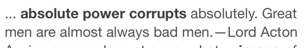 A famous philosopher once said “Absolute power corrupts absolutely.” Once we hold power in our hands it is hard to let go of it, like the rings of power in J.R.R. Tolkien’s Hobbit and The Lord of the Rings Trilogy. In the books we see the corrupting power of the one ring to rule them all, the one ring to find them and in the darkness bind them. The longer one possesses the ring of power the more possessed by it they become.