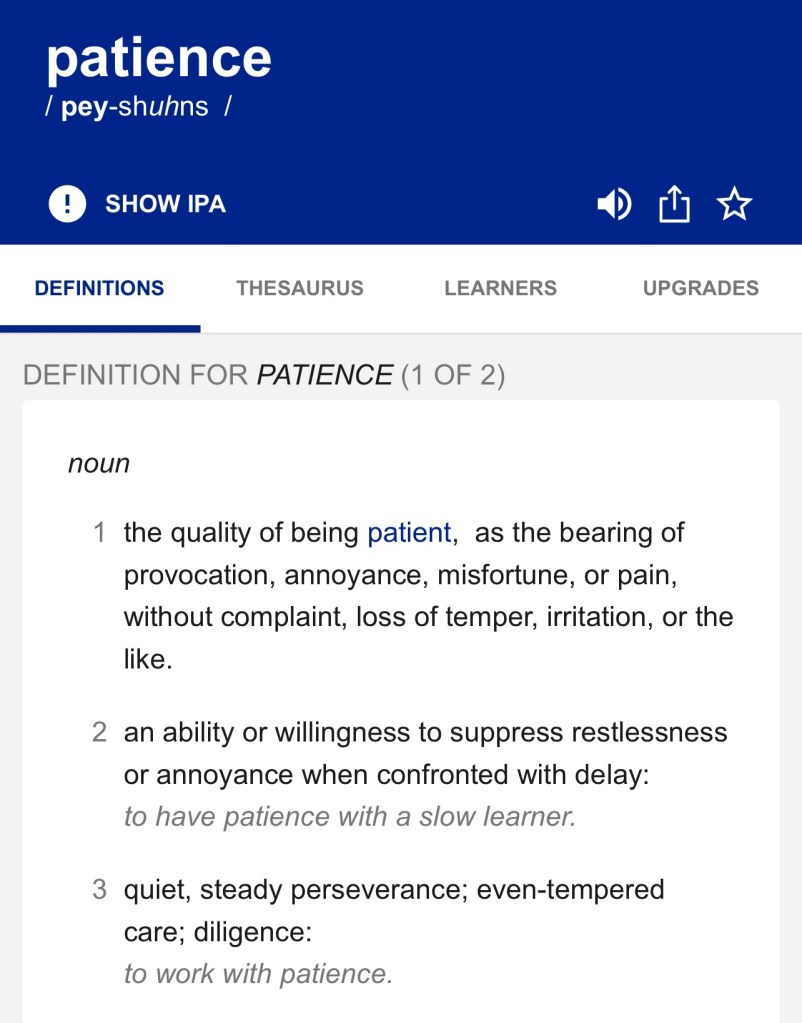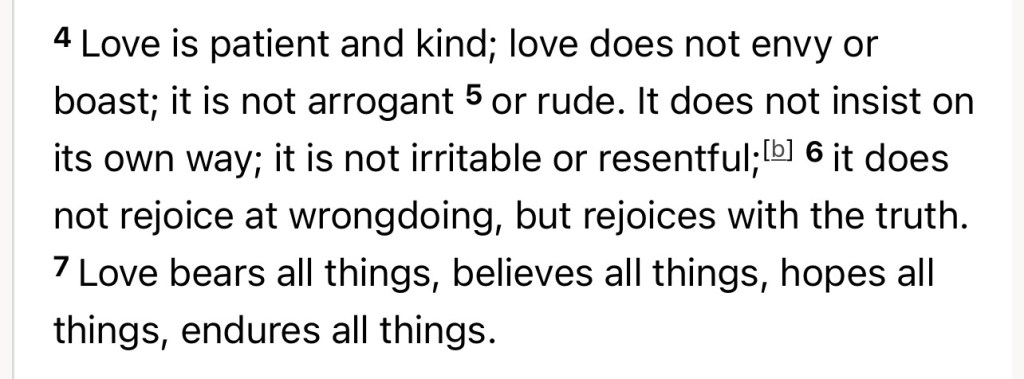 Patience is also first on the list of the Apostle Paul’s chapter defining what love is, First Corinthians Chapter 13:
