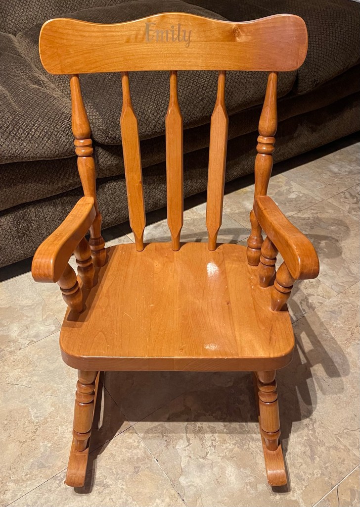 When I spotted the rocking chair covered in a clear plastic bag, it was if I could hear Emily saying “I want Emma to have my chair to remember me by.” I always had a hard time saying “No” to Emily and I am not about to start now.