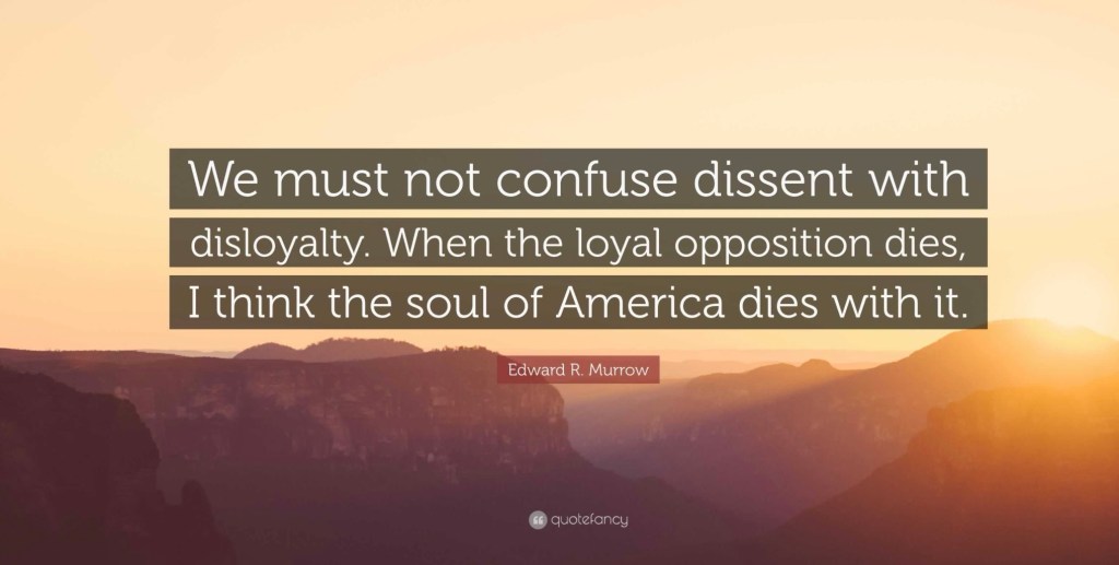 The loyal opposition is not the enemy, but only those who oppose certain policies and actions as they believe them to be not in the best interest of the country. Good men and women can disagree. The loyal opposition is there to keep us honest, to keep us in check. A democratic republic is messy and cumbersome it requires not only the consent of the governed, but in addition that the representatives employ consensus and compromise to get things done.