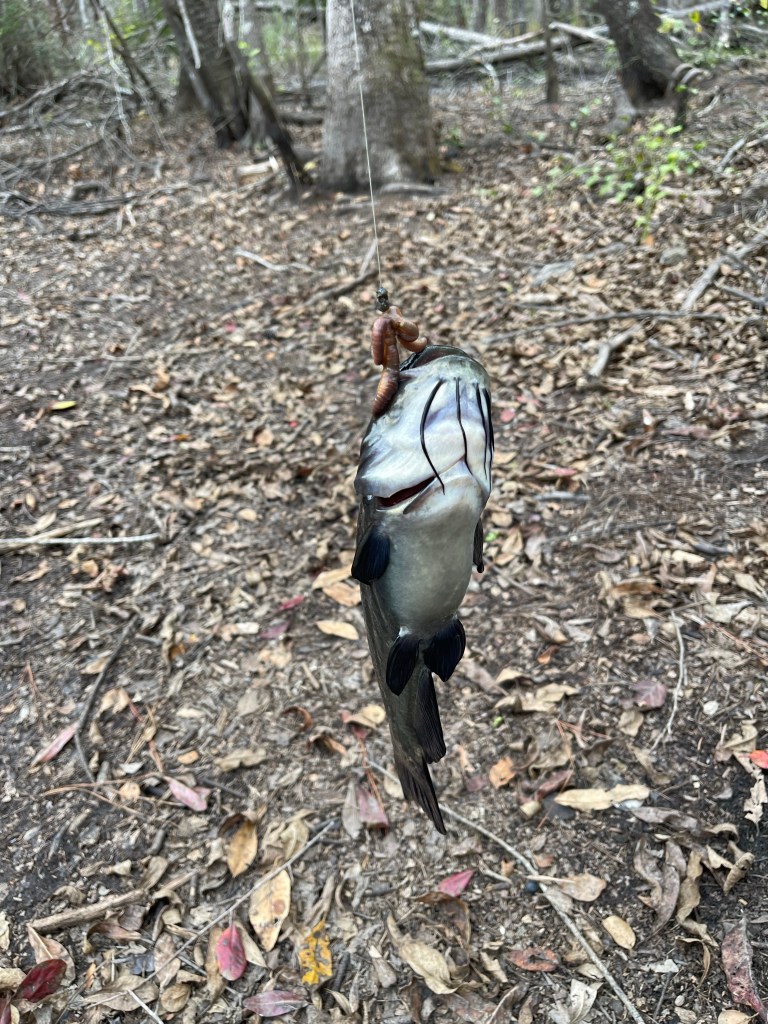After tying the boat to a tree I tried my hand at fishing finally. After about thirty minutes of drowning worms I landed a catfish, just one but I took several pictures before letting it join the turtles back in the pond.