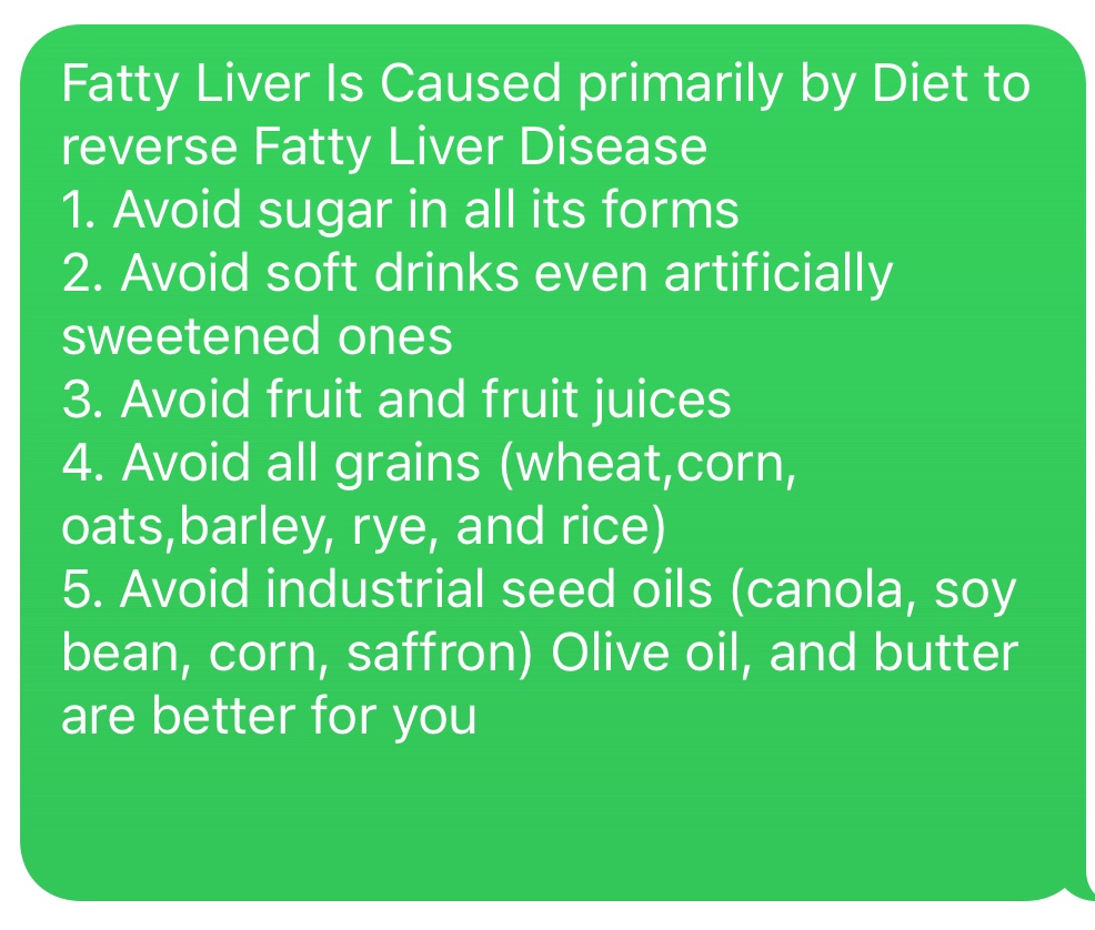 I have watched a lot of YouTube videos on Fatty Liver Disease, and how best to reverse it. Below is a clip from one of the first ones about what foods to avoid.