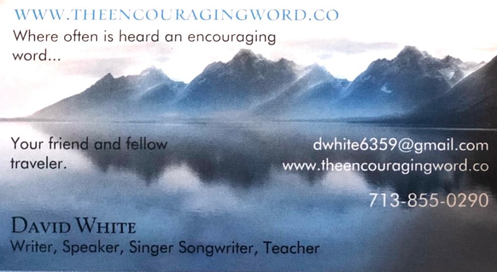 One of my best buddies in elementary school and later middle school, was a near neighbor, George David Mason. He had an electric guitar and he loved to play and I was a fan and was often an audience of one when he performed. At that time like many teenaged boys, myself included, he dreamed of being a rock star. G. David Mason instead became a Doctor of Dental Medicine and I a mechanical, welding, and utility inspector in the oil and gas industry, but as my business card says, I aspire to be a Writer, Speaker, Singer-Song Writer, Teacher.