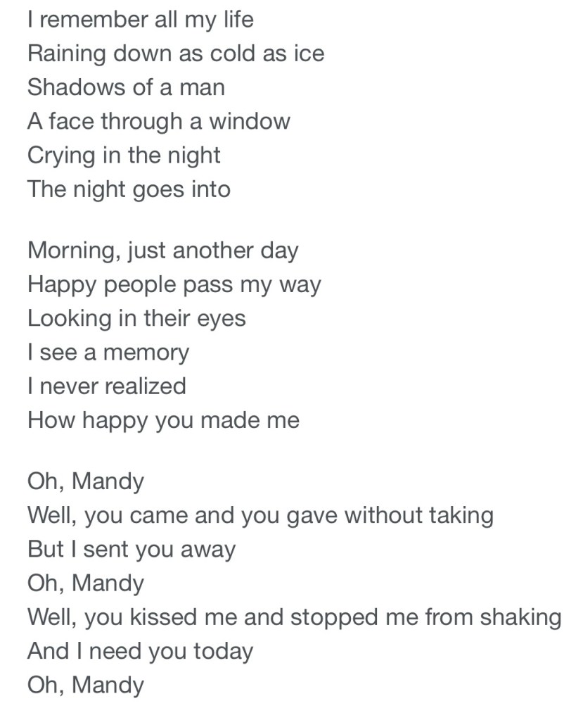 Barry Manilow in one of his first big hits, Mandy, examines this same theme: