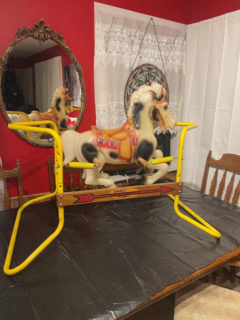This will be my biggest Emma project yet. My first toy restoration project for her was a spring horse that Jays’s cousin Greg had passed down to him.