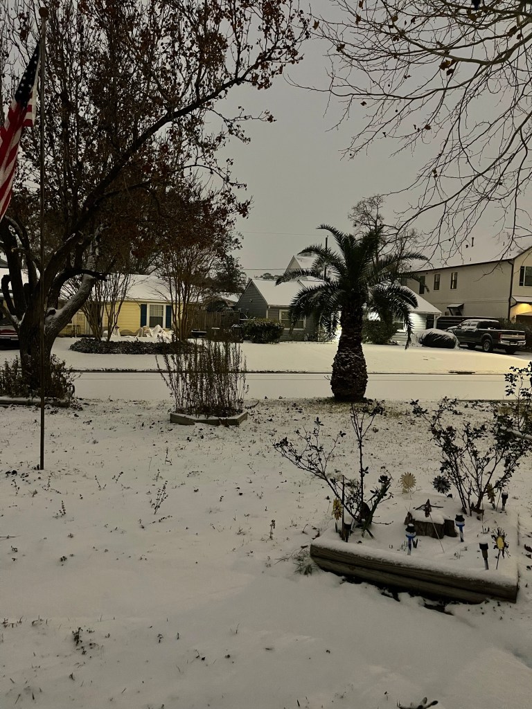 As a rare snow is beginning to blanket my current and long time residence in Houston, Texas, I am reminded that “all things are possible, only believe.” A dear friend in Wisconsin always texts me “Happy Birthday” when it snows there. Today my happy birthday dream has come true “right here in Bayou City.”