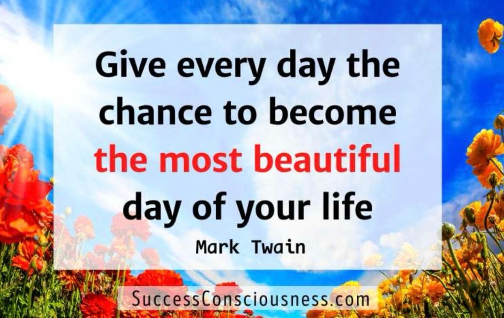 Enjoy this lovely day and in the words of Mark Twain in today’s picture quote above, give it a chance to become the most beautiful day of your life.