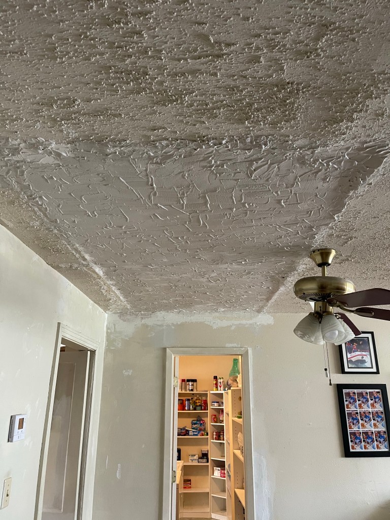 My ceiling repair project is finished. Since I put the Sheetrock compound (mud) on pretty thick in places hoping to cover my less than professional job, I let it dry an additional day before painting. I am sure my deceased Uncle Buddy, who made a good living with his Sheetrock installing and finishing business, would have gotten a big chuckle out of my final results. I am nevertheless happy, as it came out better than I thought it would and is far better than the sagging sheetrock we lived with for many years and especially the big hole in the ceiling after it finally fell down.