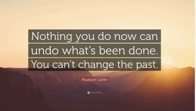 But all the pictures quotes that I found kept expressing the same misunderstanding, “ We can’t undo what’s done.” Of course we can. Actually “can’t undo” is a double negative and that makes it a positive. And as far as not being able to change the past, enlightenment or shedding light always does that too. Worry, doom, and gloom always give way and are transformed by light. What do you say, let’s undo what’s done and bring back the light.