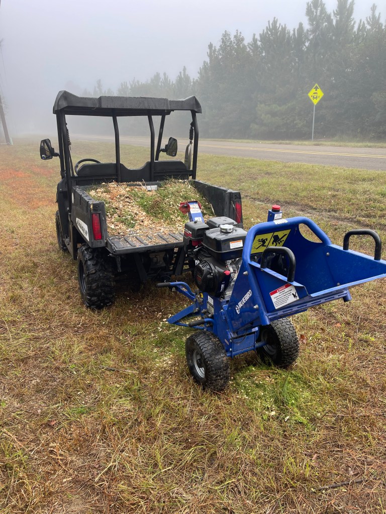 My hope was, once I had a camper with facilities on the property to talk my wife into making the trip with me each week and spend a couple nights there. This we have done for over a couple of months now. With my son’s help again we now have a used Polaris Ranger 500 to ride around on and just this week added a used Bluebird wood chipper to our tools for clearing our almost five acre tract that we hope to make into a home site and perhaps a ten acre version of the horse ranch I dreamed of over a decade ago.