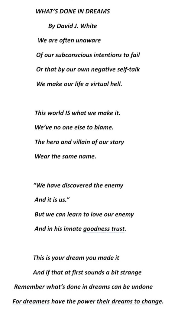 From a young boy I taught myself to think in rhymes. I have committed to memory hundreds of songs that rhyme. Had I found a partner who thought in melodies, I could have perhaps been half of a great song writing duo. Though I took music class in primary school and college, like the guitar, it was something I always thought I might work on, yet never did. I am just not a numbers person. Words are my medium.