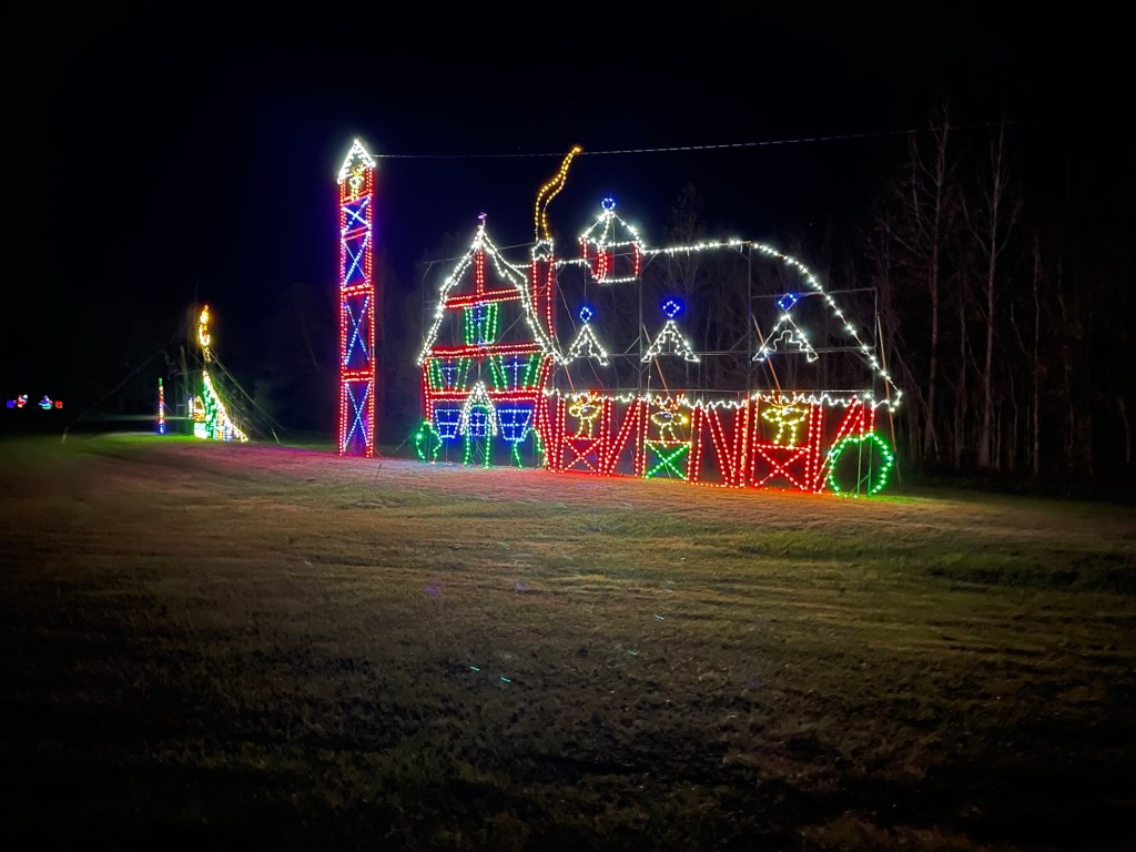 Thursday evening my wife and I treated ourselves to the Dairy Queen (one of three restaurants in Newton.) And after that to a long walk through Newton’s park all decorated with Christmas lights.