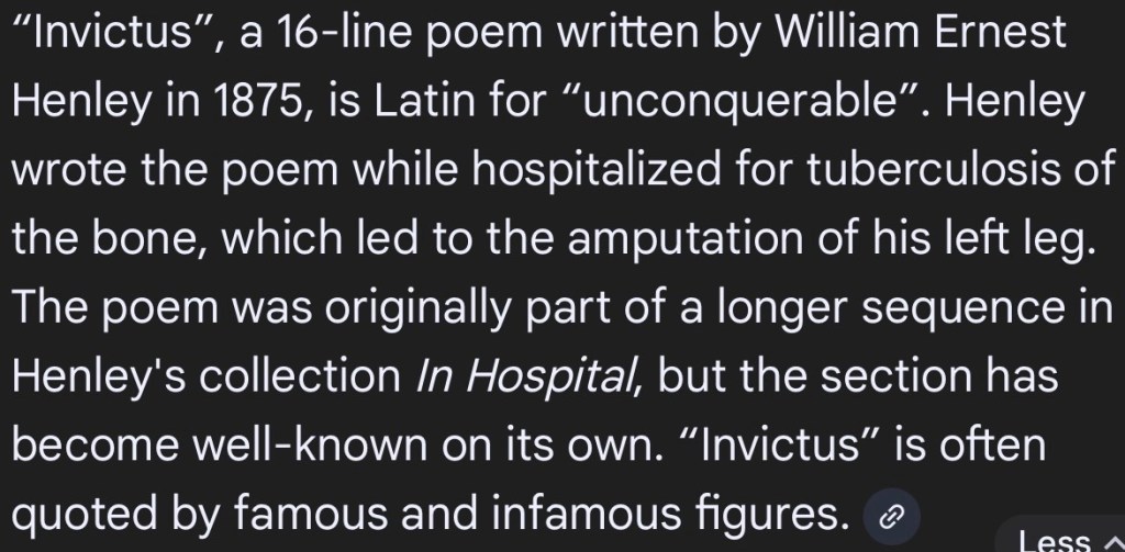 “I am the master of my fate: