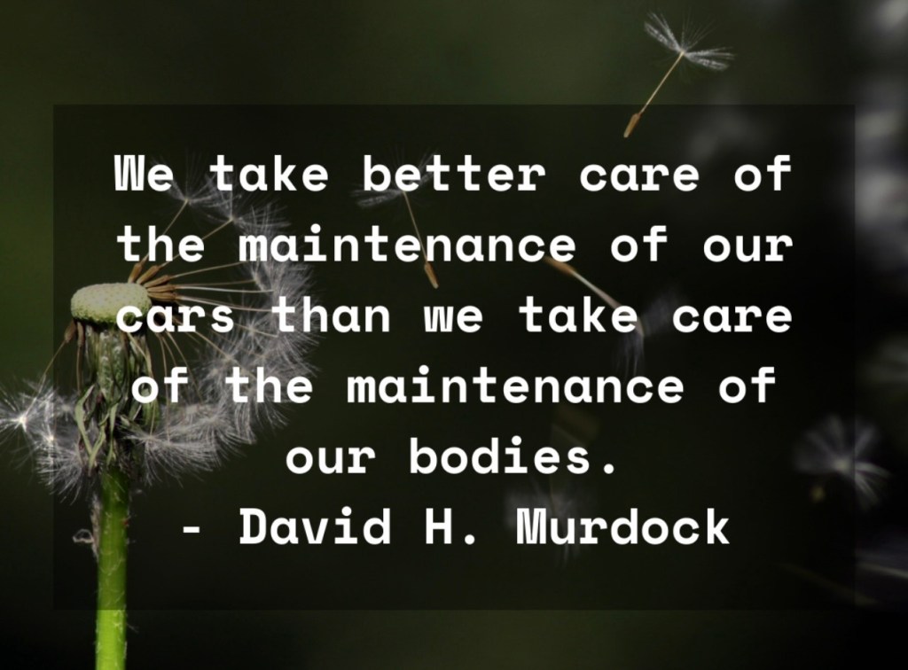 These bodies we inhabit are in the poetic words of the Bible, “fearfully and wonderfully made.” And yet if we expect them to last for the long-haul there is a certain amount of regular maintenance required. In addition to water, fuel, sleep, and cleaning minimizing undo stress is the best way to get the most miles out of a body.