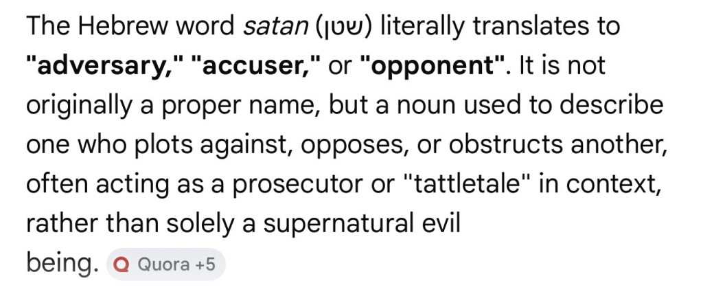 Some people believe that the Great Satan is a fallen angel. Many people accuse people who do not look, think, or believe like them of being an enemy therefore deserving of death and destruction. In reality those we would quickly accuse and label “others and strangers” are but brothers we have yet to get to know. I often quote a line from a rock song, words to me that are as inspired and holy as any words in the canon of books will call the Bible: “Their ain’t no good guys, their ain’t to bad guys, there’s only you and me, and we just disagree.”